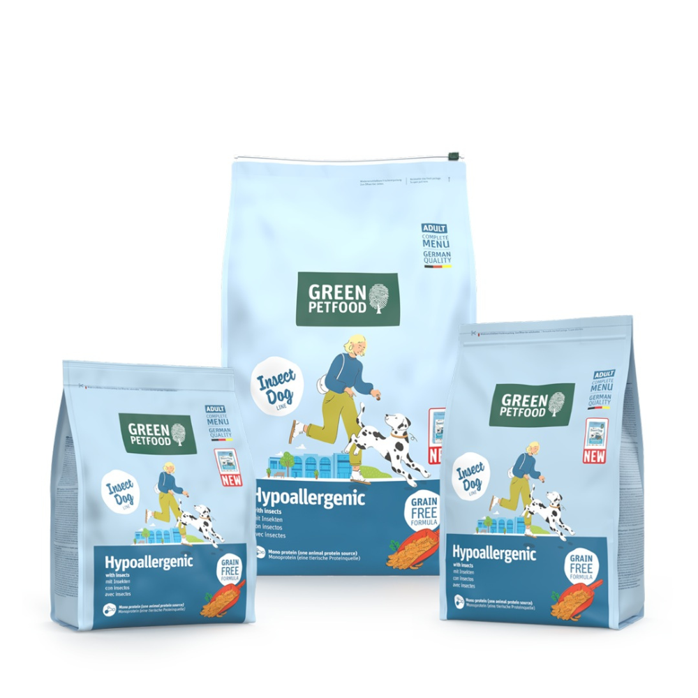 Green Petfood Hypoallergenic is the new name for InsectDog Hypoallergenic. New bag design, same delicious recipe. Hypoallergenic insect protein food is a complete dog food that uses insect as the single animal protein. Insects are a novel protein source as dogs have not been exposed to it which helps dogs that are allergic or that have intolerances or sensitivities. This recipe is also grainfree and gluten-free. Green Petfood Hypoallergenic is a well-balanced recipe with optimal digestibility so is also ideal for dogs needing a high quality maintenance food.